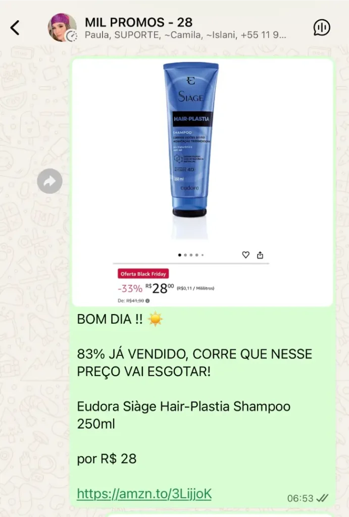 Entre no grupo VIP e receba cupons testados, suporte, e aquelas oportunidades que somem rápido demais pra aparecer no Instagram.
